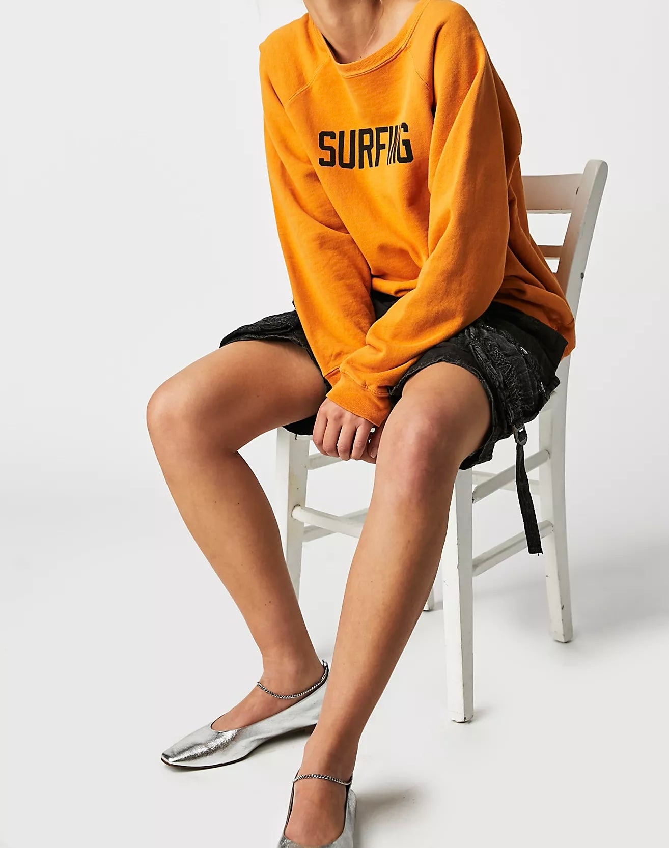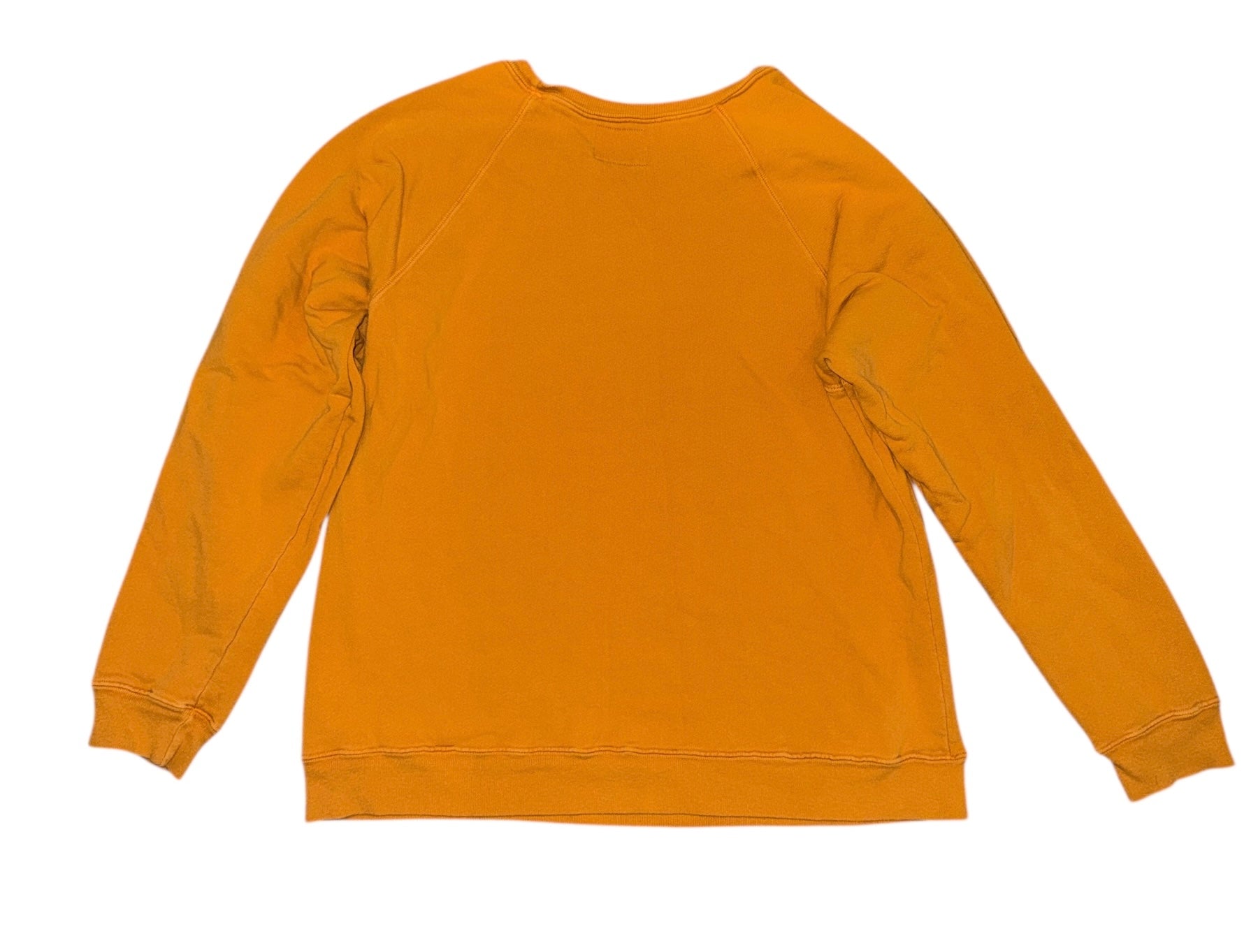 Retrobrand women’s oversized orange pullover crewneck sweatshirt with SURFING on front, size XS.