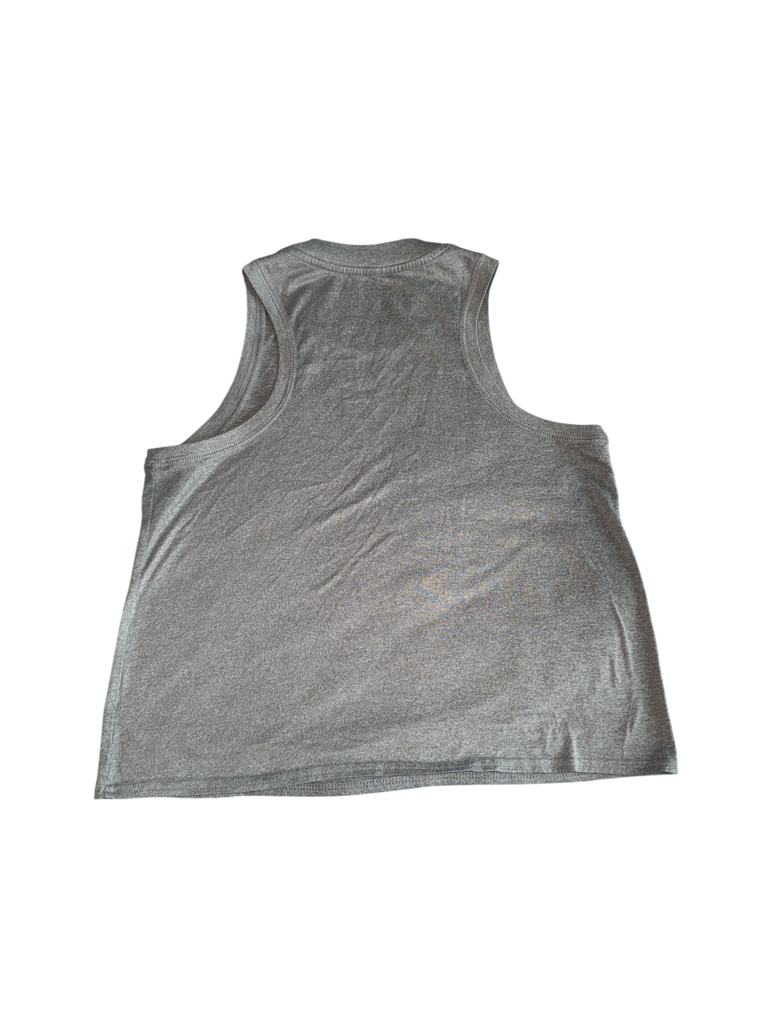 Vuori women’s soft and stretchy heather gray/beige Lux high neck muscle tank, size XS.