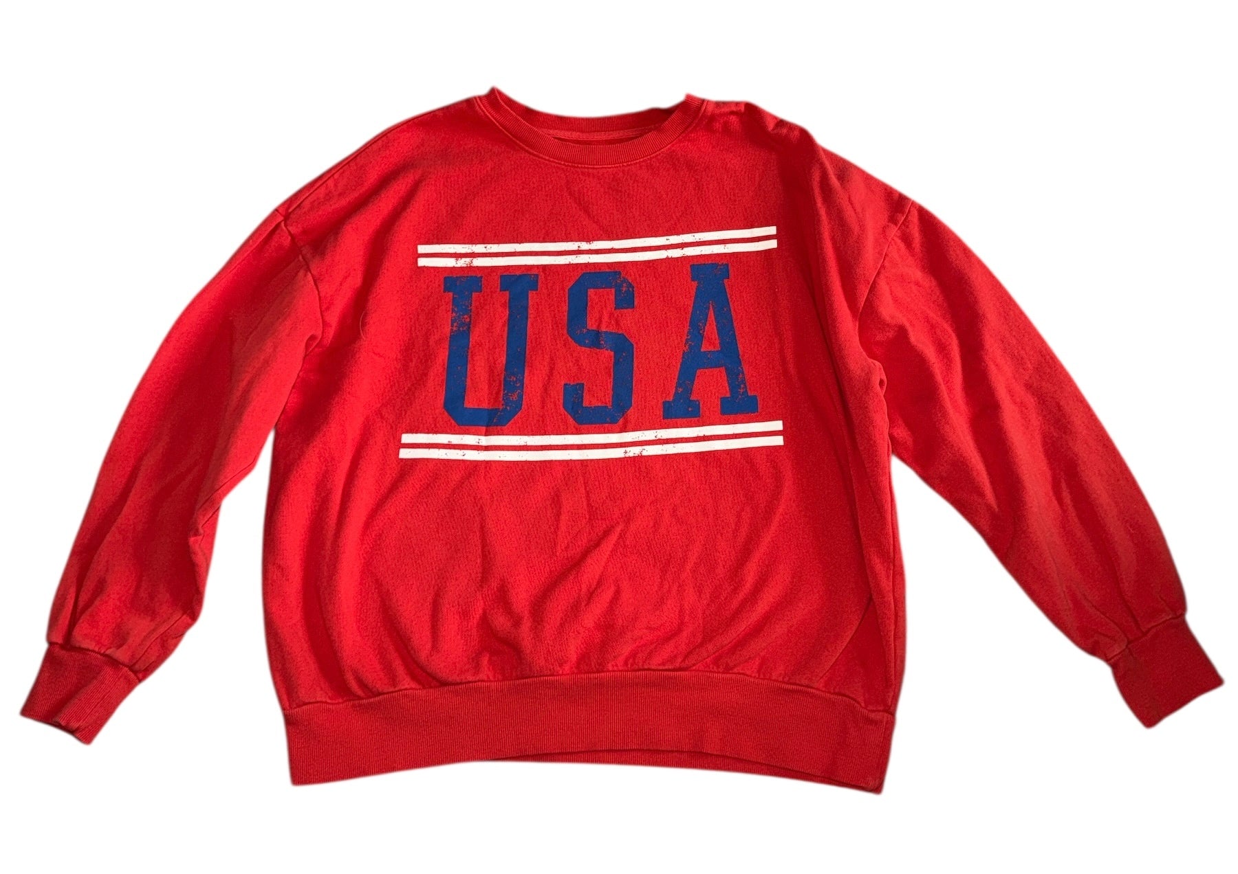 Z Supply women’s soft crew pullover Sunday USA pullover graphic sweatshirt, size S.