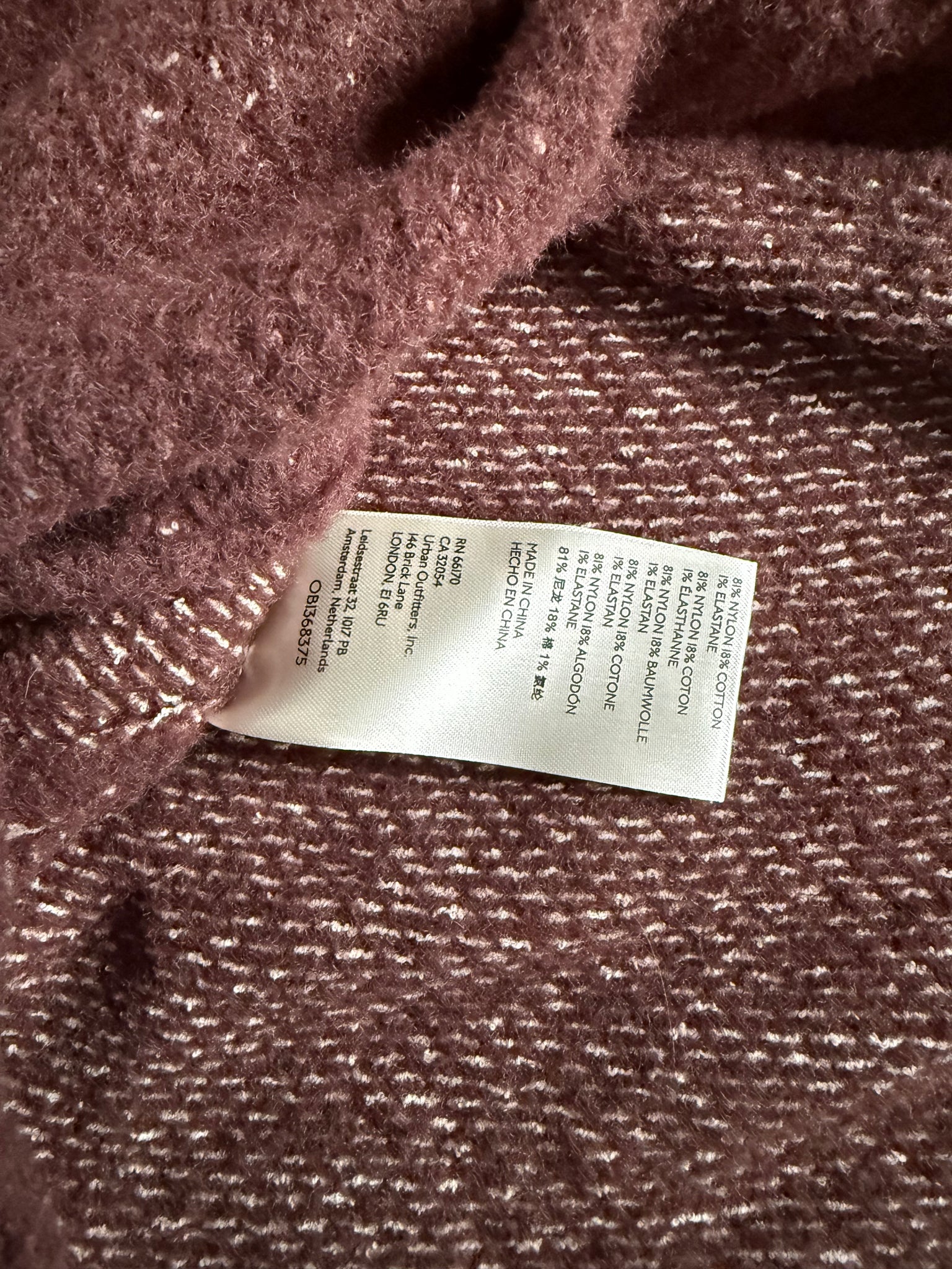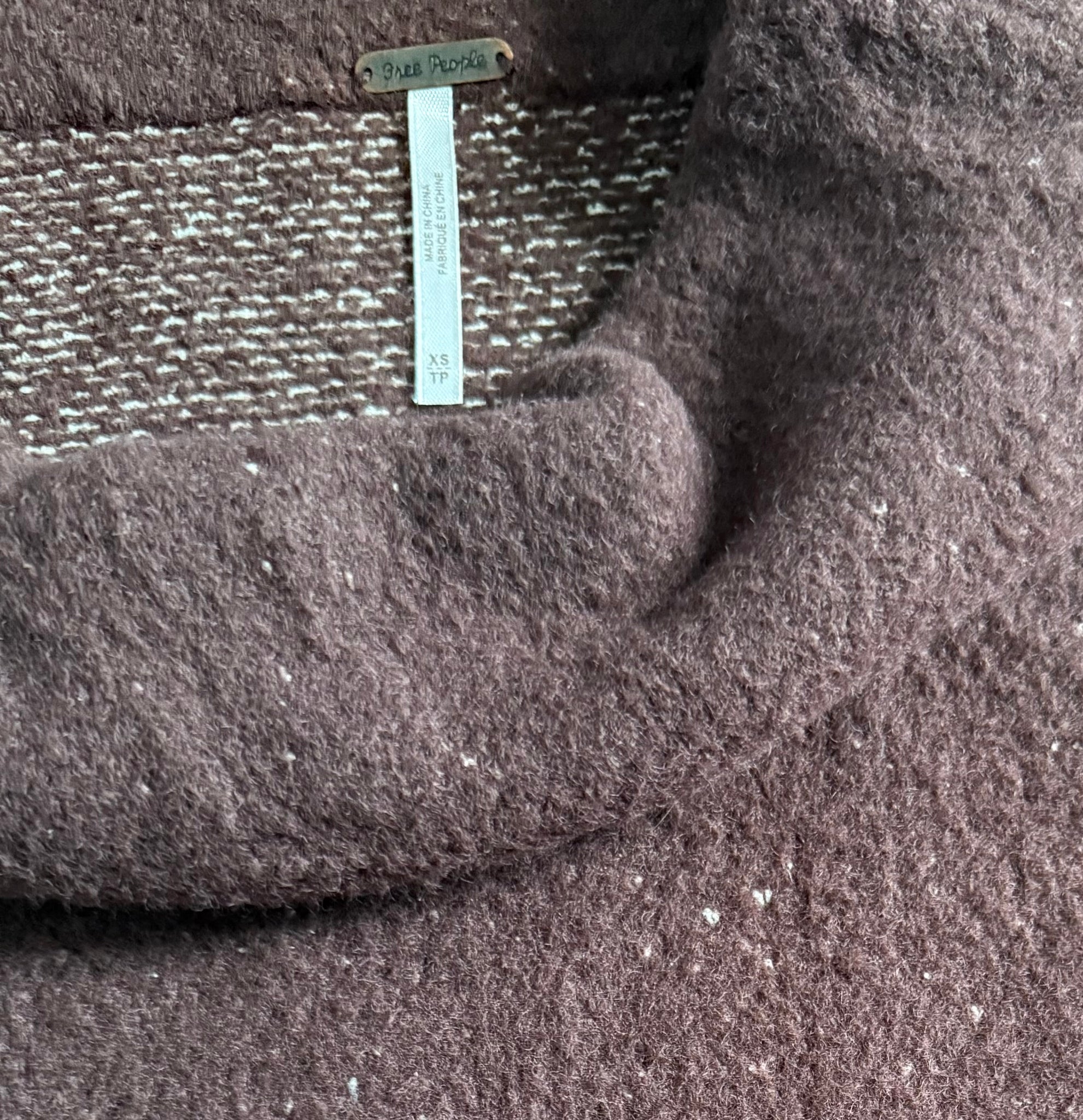 Free People women’s super soft San Vincente short funnel neck sweater in birch (chocolate brown), size XS.